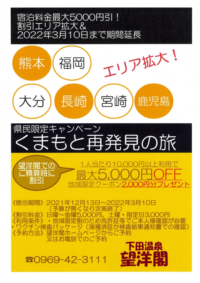 『くまもと再発見の旅』期間延長・対象が隣接県へ拡大