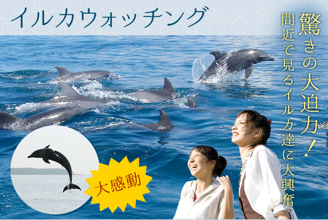 当館のスタンダードプランにイルカウォッチングのコースを加えたプランもございます。天草の大自然を五感で感じてみませんか。